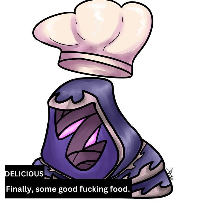 By purchasing and consuming any dish or drink infused with Telogrus Rift ingredients, you hereby accept any and all possible side effects of such consumption, up to and including temporary or prolonged hallucinations or physical abnormalities.
